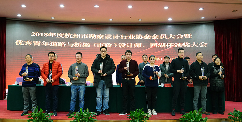 毛卫雷副处长代表市建委宣读《关于公布杭州市优秀青年道路与桥梁(市政)设计师选拔和培养结果的通知》(杭建设发【2018】165号)、《关于公布2018年度杭州市建设工程西湖杯奖(优秀勘察设计)评选结果的通报》(杭设协【2018】5号)。会上,对10名优秀青年道路与桥梁(市政)设计师以及45个获得杭州市建设工程西湖杯奖(优秀勘察设计)一等奖项目进行表彰颁奖。